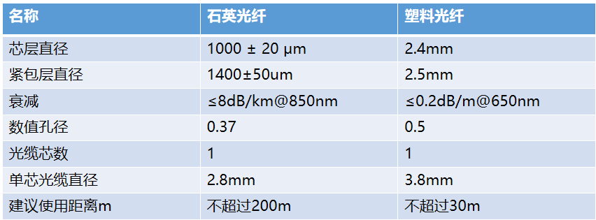 石英光纖和塑料光纖參數(shù)